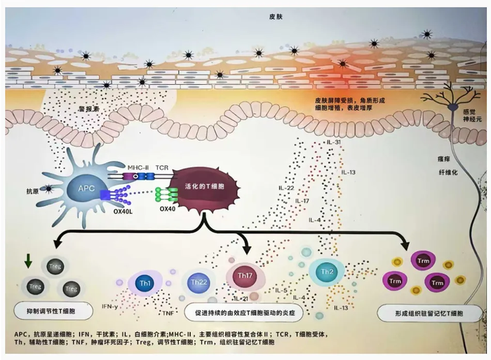 AD 停药必复发?别死磕达必妥了!OX40L 通路新疗法,附Amlitelimab三甲医院用药机会发表时间:2026-01-14 11:06来源:伊顿健康 伊顿健康导读 很多特应性皮炎(AD)患者都面临治疗后停药易复发的困境,这不仅加重身体负担,也让患者对治疗倍感迷茫。其实AD的核心是免疫失衡,而前炎症阶段正是失衡的起始环节,若能在此阶段干预,有望实现无需持续用药的长期控制,这也是AD治疗的新探索方向。 本文双学科视角解析OX40L(OX40配体)/OX40通路与AD前炎症的关联,以及靶向药物的临床价值,为临床实践提供指引。 一、特应性皮炎前炎症阶段定义 前炎症阶段并非真正的病理炎症,而是炎症发生的“预备状态”,发生在典型病理炎症反应之前。当机体受异物或损伤刺激时,固有免疫细胞会形成“免疫驯化”效应,能更快应对后续刺激。 其中,CD4+T细胞通过OX40L/OX40共刺激分子发挥关键调控作用,同时自身也会发生变化并分化为不同细胞亚群;该通路还能调控调节性T细胞(Treg)的生存和功能,是前炎症阶段免疫调控的核心。 二、OX40L/OX40 通路 推动特应性皮炎慢性化与复发的机制 AD的病理过程最终会导致皮肤屏障受损和T细胞介导的免疫失衡,而OX40L/OX40通路是推动失衡持续的关键。AD患者皮肤组织受感染、搔抓等刺激后,多种细胞的OX40L表达会升高,与T细胞表面的OX40结合后激活T细胞,让免疫反应从“预备”进入炎症阶段。 这一过程会引发一系列炎症反应,造成皮肤损伤;同时,持续的OX40L/OX40信号还会促进皮肤组织驻留记忆T细胞(Trm)存活,让皮肤长期处于“高反应性预备状态”,再次受刺激就会迅速触发炎症,导致AD复发。因此,靶向阻断该通路,有望从上游平衡免疫反应,实现更持久的疾病缓解。 三、OX40L/OX40 通路 对特应性皮炎关键免疫细胞的调控作用 Treg和记忆性T细胞是促进AD慢性化和复发的重要细胞,OX40L通路对其功能有显著调控作用。 1. 对调节性T细胞(Treg):双向调控,失衡加重炎症 健康状态下Treg维持免疫稳态,AD炎症环境中其抑制功能会失调甚至转化为促炎细胞。OX40L通路对Treg呈双向调控:非炎症环境中促进其扩增,AD炎症环境中则抑制关键转录因子,破坏免疫稳态。阻断该信号或可增强Treg活性,仍需更多研究验证。 2. 对记忆性T细胞:复发的核心推手 组织驻留记忆T细胞(Trm)是AD迁延复发的重要驱动因素,OX40L通路能促进其形成和存活。阻断该通路可能减少Trm,延缓疾病进展、降低复发风险,这一方向值得深入研究。王月丹教授认为,靶向阻断该通路或为AD长期控制带来希望。